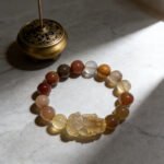 100% handmade with no assembly-line production, embodying the artisan’s ingenuity and traditional techniques. Artisans hand-select each colorful agate bead, strictly control the purity and texture of each color, only retaining high-grade materials with clear crystals, no cracks or impurities, and uniform color. A variety of natural color agates are hand-matched to ensure the overall color matching is harmonious and the texture is uniform. Clear quartz beads are hand-matched to ensure uniform size and transparency; the hand-carved lotus accessory is finely polished through multiple processes, with rounded lines and elegant shape, and the details of each lotus are unique. The whole bracelet is hand-strung with reinforced hand-woven knots, adjustable tightness, comfortable to wear, suitable for various wrist sizes, showing personality and texture. Before consecration, the beads are hand-cleaned and energy-aligned to remove impurities, making the five-element harmony energy purer and more concentrated.