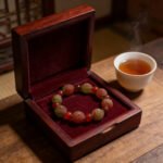 Hand-selected translucent jade-like material, hand-polished beads, hand-carved peony relief; hand-strung with comfortable knots. Purified under moonlight before consecration.