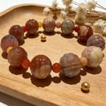 Two-tone Alashan stone carries **Metal & Water elements**. Metal enhances communication; Water boosts relationships. The dual‑color design creates a harmony aura for better teamwork and noble luck.