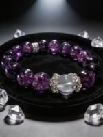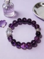 100% handmade with no assembly-line production. Artisans hand-select each amethyst bead, only keeping high-grade material with natural flash, clear crystal, no cracks or impurities; clear quartz is hand-matched; silver inlaid crown accessory is hand-positioned and set; the whole bracelet is hand-strung with reinforced hand-woven knots for a comfortable fit. Before consecration, beads are hand-cleaned and energy-aligned for purer infusion.