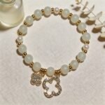– 100% handmade with selected Hetian jade beads, paired with pearls and diamond-inlaid four-leaf clover pendant, exquisite craftsmanship with extremely limited production